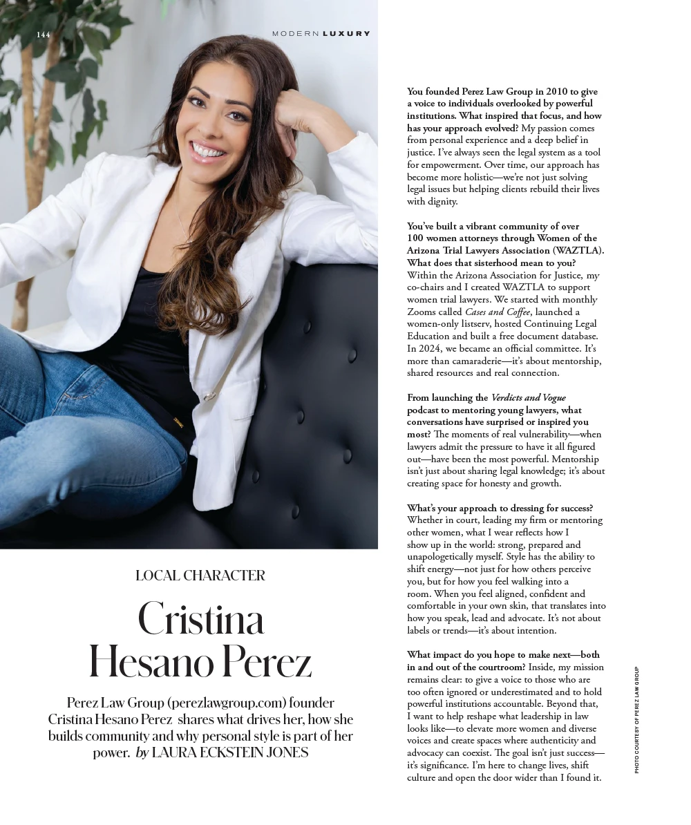 We are proud to share that our founding attorney, Cristina Hesano Perez, is featured in the September 2025 issue of Modern Luxury Scottsdale.